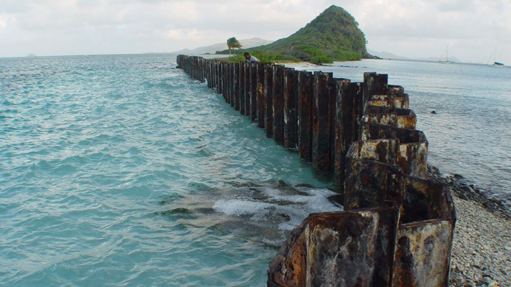 Steel bulkhead in Ashton Lagoon that was removed during the mangrove restoration (Credit: Lisa Sorenson/BirdsCaribbean)